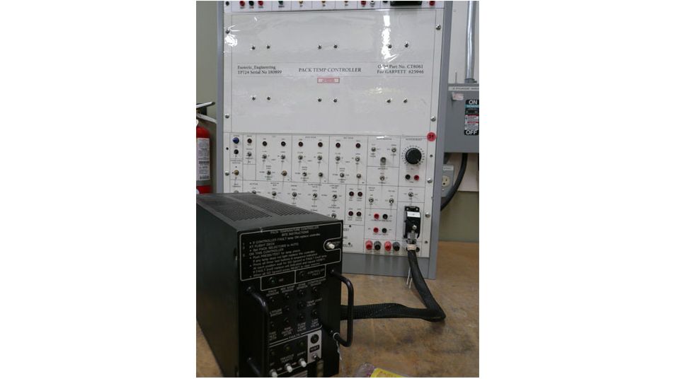 This Garrett/Honeywell CT-8061 equivalent test panel is used for bench testing, troubleshooting, repair and calibration of the B757/B767 Pack Temperature Control, Garrett part number 625946-8 or 625946-9, as specified in ATA 21-51-03.
