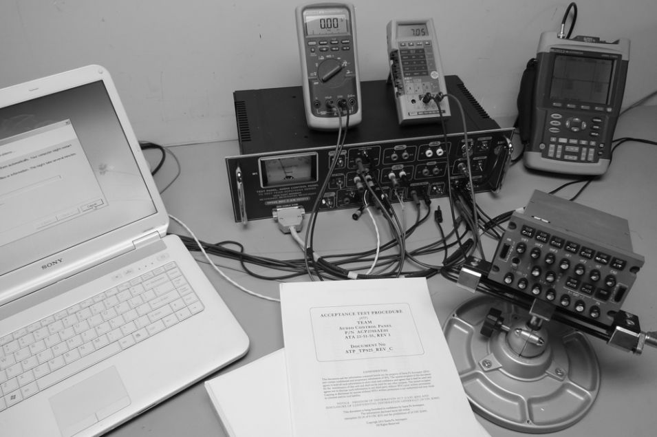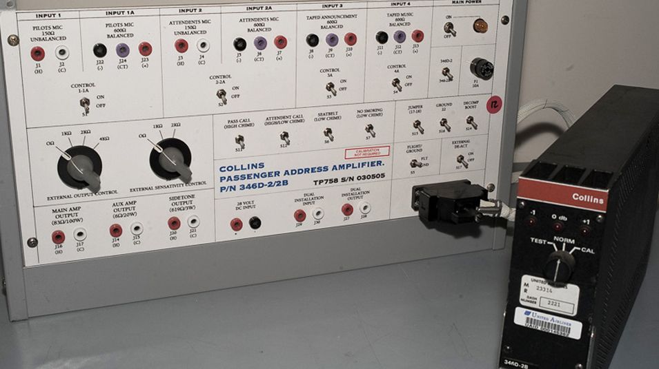 This TP758 test panel is used for bench testing, troubleshooting, repair and calibration of the B727, B737 Rockwell/Collins Passenger Address Amplifier , Model 346D-2/2B, P/N 622-4096-001, as specified in ATA 23-32-02. It is also equivalent to P/N ASI-222-1.