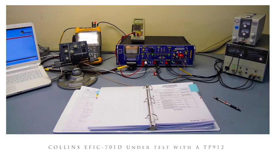 This ITS-700 Simulator test panel (partially equivalent to CPN 651-5725-001) is used for bench testing, troubleshooting, repair and calibration of the B737-300, -400, -500, COLLINS EFIC-701D, ELECTRONIC FLIGHT INSTRUMENT CONTROL, P/N 622-8001-XXX Series, as specified in ATA 34-22-66.