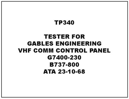 This TP340 Test Panel is equivalent to OEM ASI-1002 and ASI-10-o2A. It is used for bench testing, troubleshooting and repair of B737-800, VHF COMMUNICATION Control Panel P/N G7400-230, as specified in CMM ATA 23-10-68. Purchase includes Interface Cable C340, which is equivalent to OEM ASI-10-02A