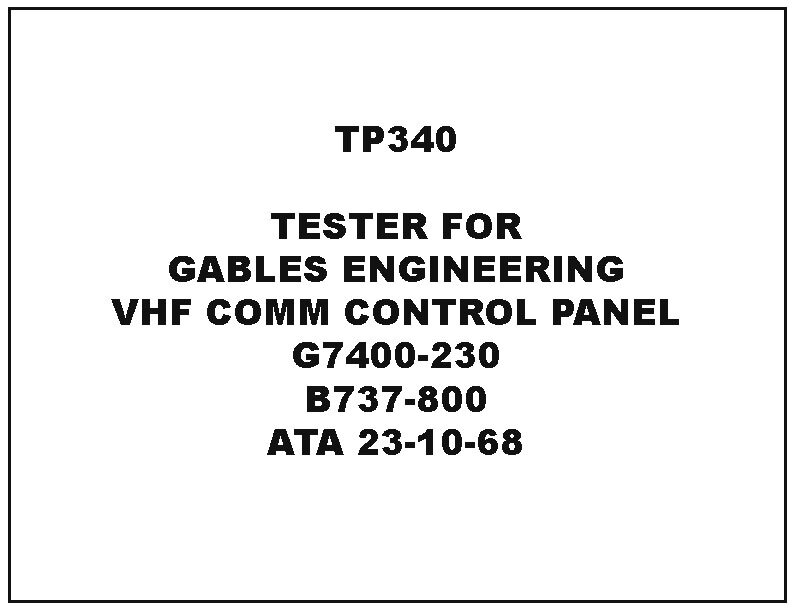 This TP340 Test Panel is equivalent to OEM ASI-1002 and ASI-10-o2A. It is used for bench testing, troubleshooting and repair of B737-800, VHF COMMUNICATION Control Panel P/N G7400-230, as specified in CMM ATA 23-10-68. Purchase includes Interface Cable C340, which is equivalent to OEM ASI-10-02A